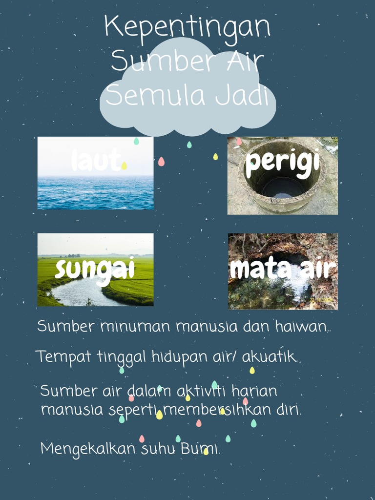 Sumber air semula jadi sains t2 sumber air semula jadi ID. 911 Menyatakan sumber air semulajadi seperti hujan sungai tasik laut dan mata air. SUMBER SEMULA JADI DAN KEGUNAANYAKhas daripada Kumpulan 5 2.