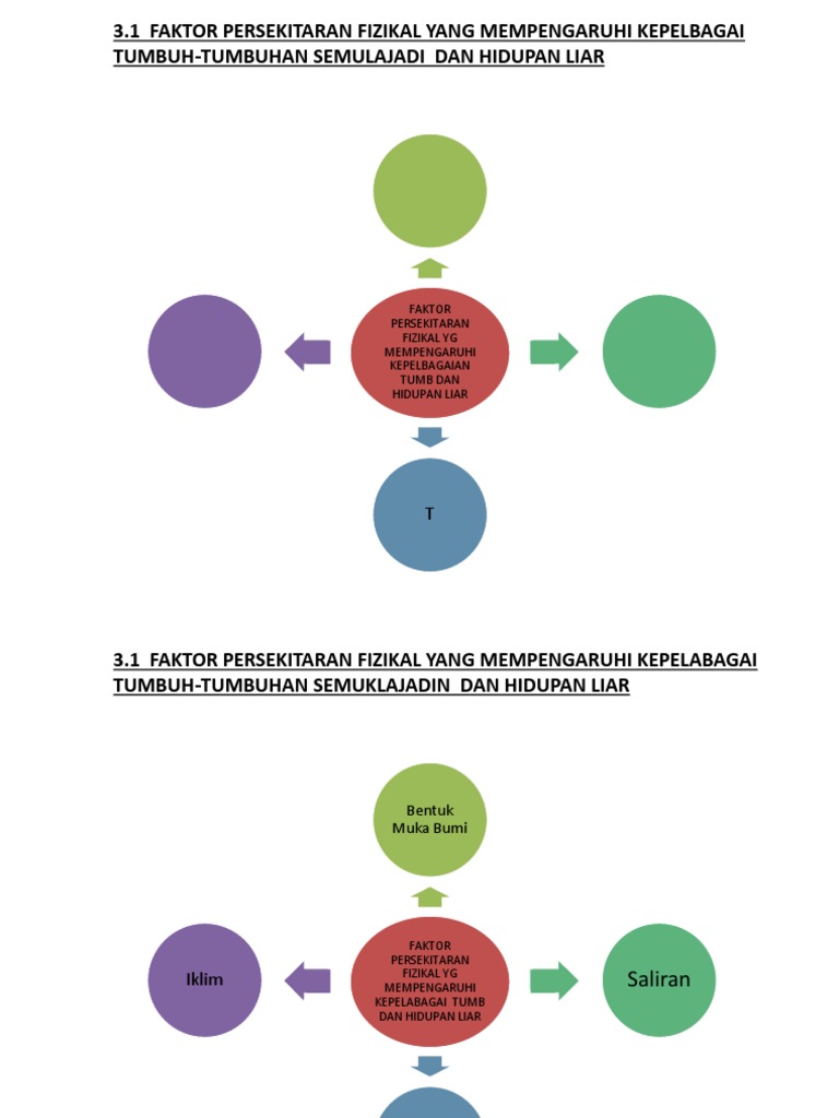 PENGARUH PERSEKITARAN FIZIKAL TERHADAP KEPELBAGAIAN TUMBUH -TUMBUHAN SEMULA JADI DAN HIDUPAN LIAR 31 Faktor Fizikal. View presentation1-190205151627 1pptx from COMM 101 at University of Wollongong. Bentuk muka bumi merujuk kepelbagaian ciri serta ketinggian sesuatu daratan yang diukur dari.